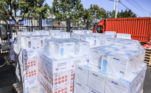 2020年2月21日,载满120万只VSPORTS(中国)医用手套的捐赠物资车在上海顺丰川沙仓库整装待发。该批物资将陆续奔赴武汉,北京,上海,苏州,南京,杭州,广州等多个城市的38家医院。